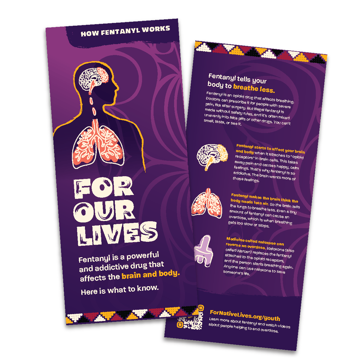 These materials are provided at no cost to tribes, behavioral health care providers, schools, youth programs, and others to help prevent fentanyl overdose deaths and opioid misuse. They also provide information about treatment and recovery resources for Native people in Washington.